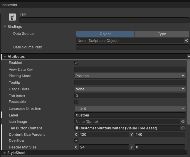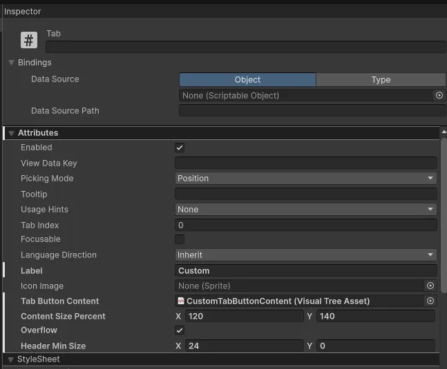 Custom Tab component allows you to add any element to Tab-Button content via VisualTreeAsset.